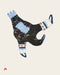 This lithograph print depicts a black bird dancing while wearing short traditional Inuit boots.