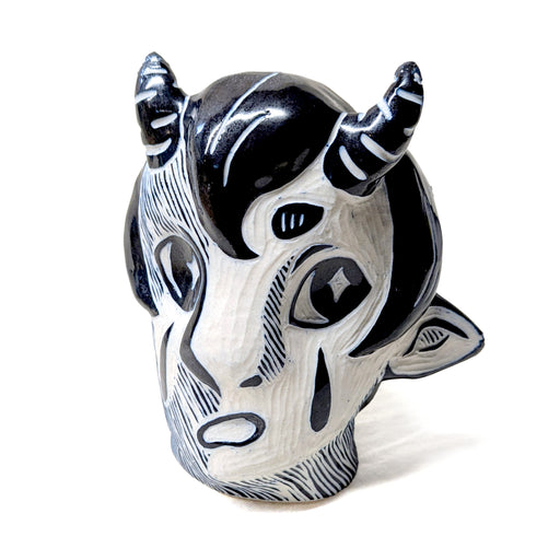 A sculpted sgraffito head with its mouth open. Jaxx Bonnamie’s ceramic sculptures use the figure to explore queerness and lived experiences of othe...