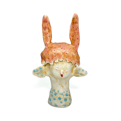 Small busts of original characters by Jeannie Pappas. A charming addition to shelves, desks, or art-filled spaces. Ceramic, glazePink Ears: Approx....