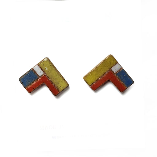 View full detailsL-shaped corner earrings in two geometric, colourful designs - creating a modern, architectural look. Stoneware, sterling silverApprox. 2 x 2 cm La...