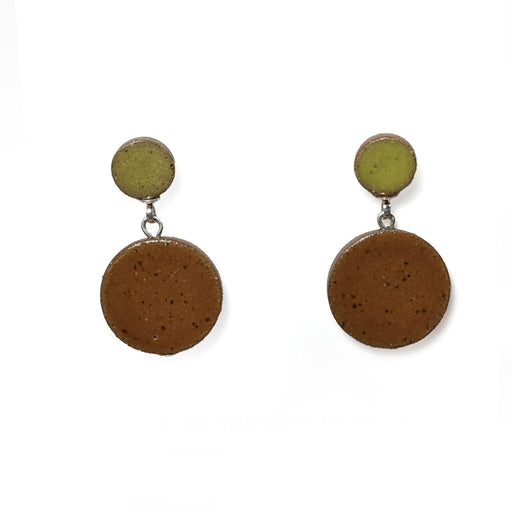 View full detailsThese stoneware dangle earrings feature a solid circular form suspended from a contrasting geometric stud. Stoneware, sterling silverDimensions ra...