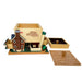 This intricate and playful wooden box is inspired by farm life. Find the farmer tending to their crops, the tractor parked next to the red barn, a car parked in the garage and a truck outside. There are many compartments to store your favourite items. The main box features a double lid and a sky motif and there are two hidden drawers - one in the house and one in the barn.