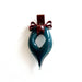 Small glass wall sculpture with unique leather-worked accents. Attached hanging hook makes this piece easy to hang with just one nail!