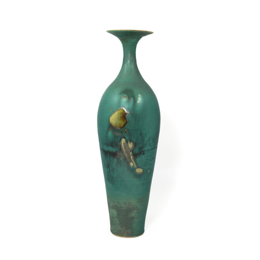 View full detailsA glossy glaze over a satin-matte turquoise conveys fluid mark making on this tall, slender vase. Porcelain, glazesApprox. 12d x 42h cm Kayo O’Youn...