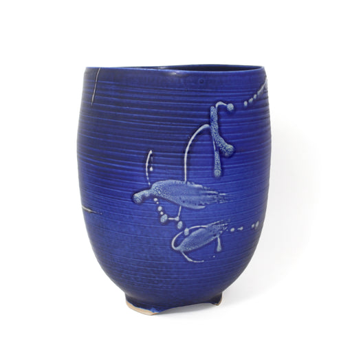View full detailsA deep, beautiful, cobalt ovular bowl with fluid decoration and carved foot. Porcelain, glazesApprox. 16.5 x 23 x 26 cm Kayo O’Young is recognized...