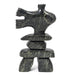 A single stone carving of stones laid upon one another constructed in a symbolic humanlike form. An inukshuk might act as a message, marking a good resting place or giving bearings to a traveler coming in from the frozen sea to a flat featureless coast. This Inukshuk, with a seal figure at its peak, may symbolize a good hunting or fishing place.