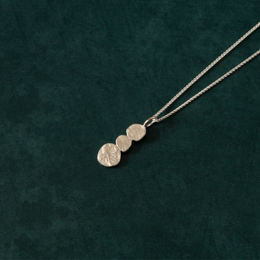 View full detailsThis handcrafted sterling silver necklace features a vertical arrangement of softly textured disc pendants in graduated sizes. The gentle progressi...