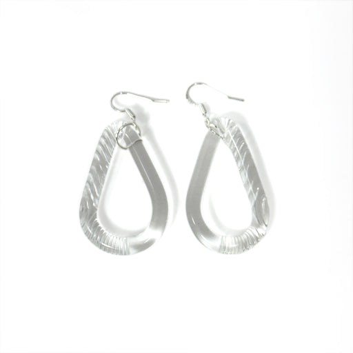 View full detailsClear glass dangling earrings in a variety of shapes. Smooth with an engraved pattern and silver lustre that really shines! Lightweight and very we...