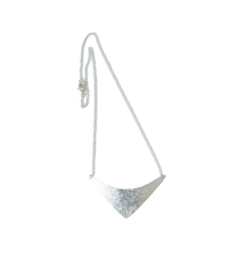 View full detailsThis necklace is hand cut and has a small hammered texture for the finish. The pendant has a slight curve to it and sits beautifully at the collarb...