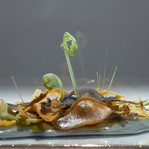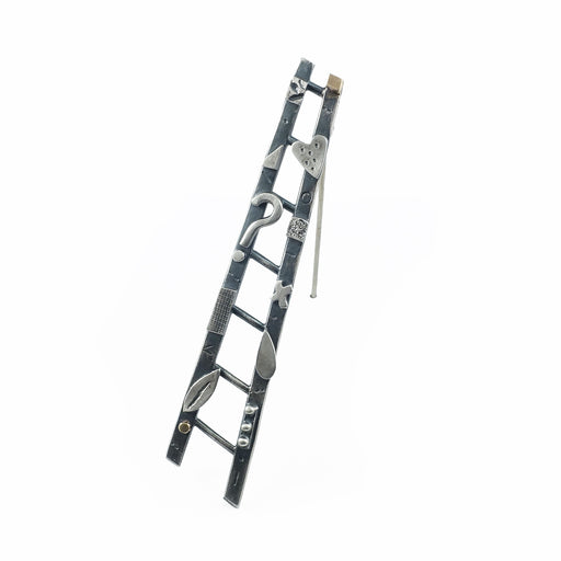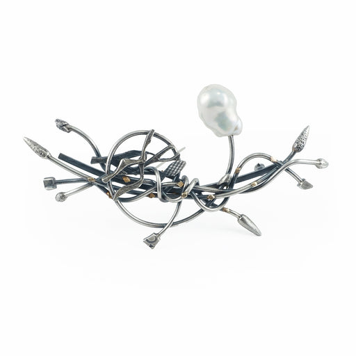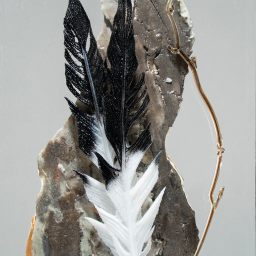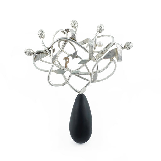 View full detailsA wool leaf brooch enveloped with sections of high quality brass zipper. The leaves have been hand embroidered and embellished with black seed bead...