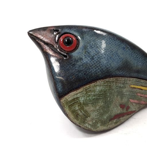 View full detailsA handmade brooch inspired by the vibrant blue jay birds. This brooch is sure to make a statement with any outfit. Wool felt, brass zipperApprox. 7...