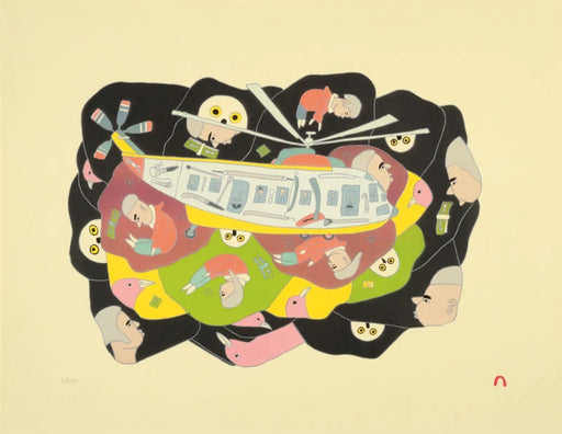 View full detailsA playful and imaginative lithograph print holding all the colours evocative of Spring. This print was released in the 2010 Cape Dorset Spring Coll...