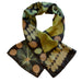 Luxurious, soft, pure silk scarf dyed in woad, and eco-printed with Chestnut, Catalpa, Plum, and Robinia. The dark-blue background complements light blue, burgundy, cinnamon, and olive-green colour prints made by leaves gathered in the artist's garden. Each scarf is hand-made using only natural materials and may slightly vary in colour, and pattern.