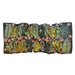 Luxurious, soft, pure silk scarf/shawl dyed in Logwood, and eco-printed with Chestnut, Cotinus, Robinia, Catalpa, and Plum leaves. The dark blue background complements gold, purple, cream, and green colour prints made by leaves gathered in the artist's garden. Each scarf is hand-made using only natural materials and may slightly vary in colour, and pattern.