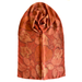 Luxurious, soft, pure silk scarf/shawl dyed in Madder and eco-printed with Catalpa, Grapevine, Virginia creeper, Madder, and Campion. The brick red-rust background complements the orange colour prints made by leaves gathered in the artist's garden. Each scarf is hand-made using only natural materials and may vary slightly in colour, leaf selection, and pattern.