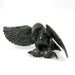A bird clutches its prey in its talons mid flight in this skillful carving of a bird and fish.