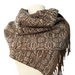 This Chocolate Smoothie scarf is a rich chocolate brown accented with contrasting white details for a soft, balanced look.