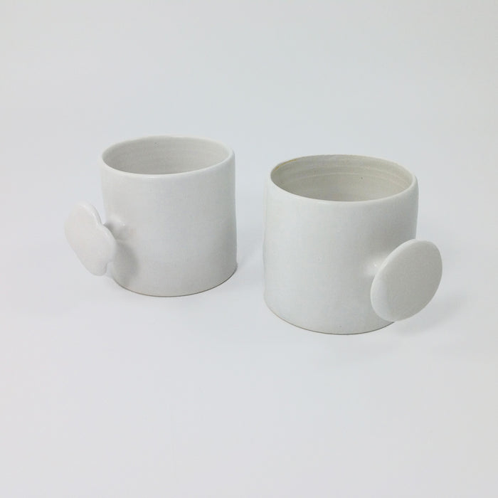 These grip cups allow you to hold onto your hot drinks with style! Two designs to choose from and made from porcelain with a matte glaze.