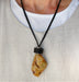 Elegant necklace with massive natural Baltic amber pendant, coconut disks and a stitched, soft and durable natural leather cord. All metal is non tarnish hypoallergenic stainless steel.