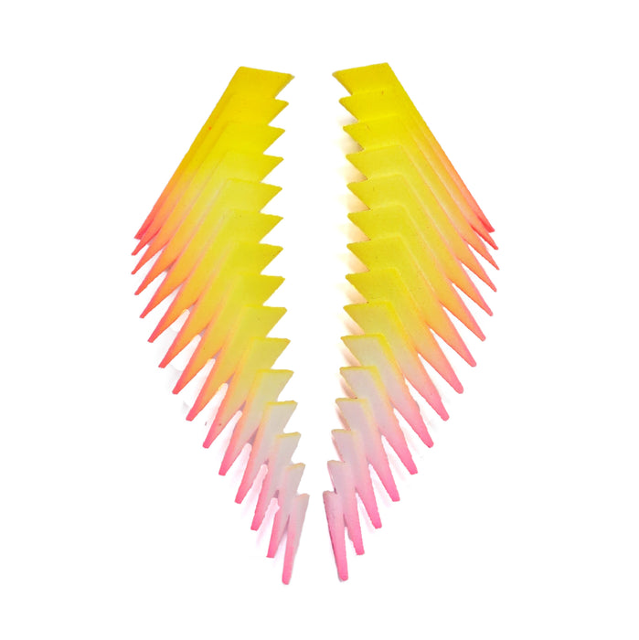 3D printed, lightweight earrings painted neon pink. The Parabora collection is the best way to put your boldest face forwards.
