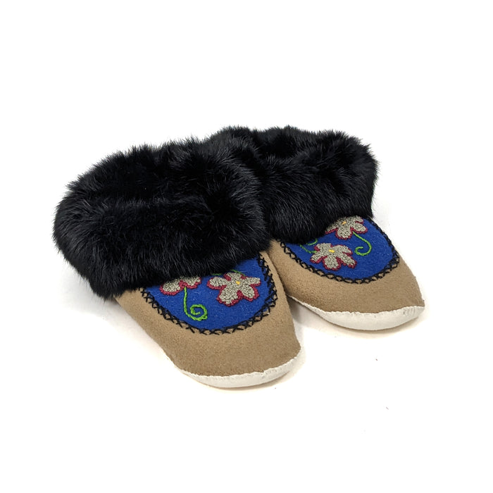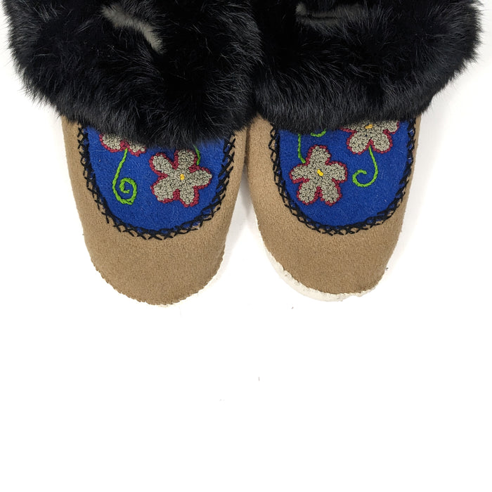 Tan and Blue Melton Slippers (7W)
